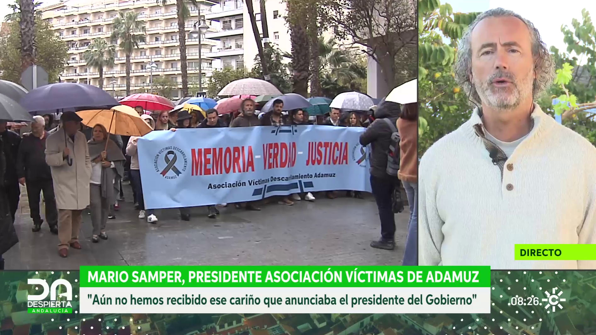 Emotivo encuentro de José Manuel Peña y Zara Villar con el periodista José Antonio Rodríguez, en directo en el plató del programa "Despierta Andalucía".