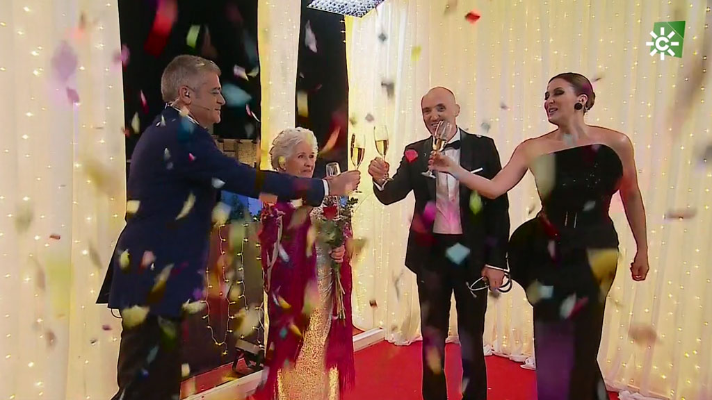 La retransmisión se ha realizado desde la localidad onubense de Almonaster la Real, por haber sufrido el peor de los incendios forestales del pasado verano de nuestro país (14.000 hectáreas calcinadas y 3000 vecinos evacuados en toda la comarca), y las han dado dos personas que simbolizaban a los sectores de la población más afectados por el covid, Joaquina Infante, de 85 años, y José Luis Callejas, un médico de Granada, que han estado arropados por los profesionales de la casa Eva Ruiz y Modesto Barragán.