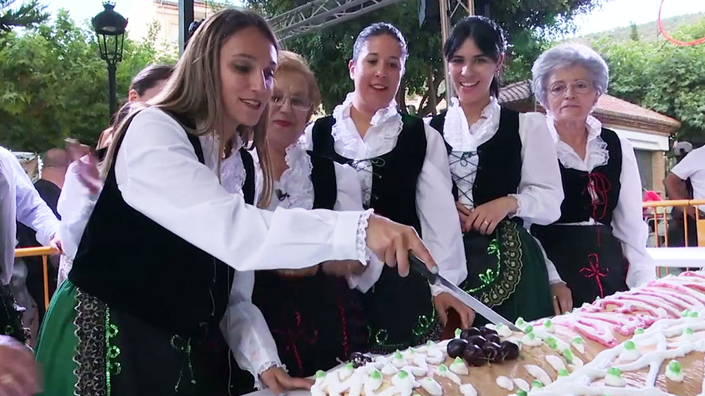 Además, nuestra reportera tendrá la oportunidad de vestir el traje regional y partir la famosa "manta castillera", un bizcocho relleno de flan y adornado con nata y cerezas. Lo que lo hace especial es que pesa más de 600 kilos y mide 2 metros de largo.