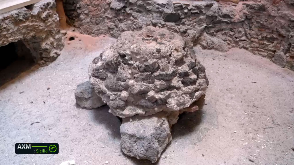 El monasterio es hoy en día la sede del departamento de Humanidades de la universidad. Cándida nos enseña el yacimiento y la lava del volcán en las profundidades del monasterio.