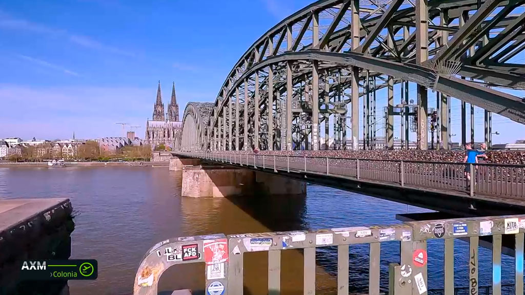 Nuestro reportero, Rafa Posadas lo visita de la mano de Carmen Casares, una malagueña que lleva 10 años trabajando allí como profesora. Para cruzar hasta catedral lo hacemos caminando por el puente Hohenzollern sobre el río Rin (uno de los siete que tiene la ciudad), que se terminó de construir en 1911 y se usaba para el paso de vehículos y ferrocarriles.