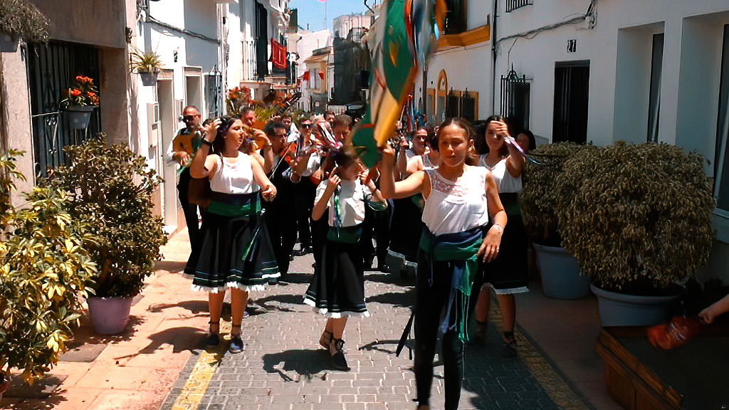 El momento más emotivo ha sido la procesión-romería, veinte carrozas profusamente adornadas y pandas de verdiales, con sus largas cintas de diferentes colores, han recorrido la localidad malagueña despertando la admiración de mayores y pequeños.