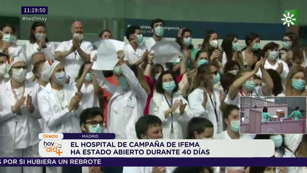 En Hoy en Día se ha podido vivir, este viernes, en directo el cierre del hospital de campaña de Ifema. Un acto solemne al que han acudido autoridades institucionales para reconocer el trabajo del personal destinado en este recinto y homenajear a los afectados por el coronavirus.