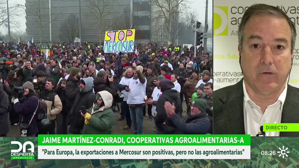 Las cooperativas andaluzas aplauden la decisión del Parlamento Europeo de someter el acuerdo comercial recientemente firmado entre la Unión Europea y los países de Mercosur al dictamen del Tribunal Europeo de Justicia. En "Despierta Andalucía" hablamos con Jaime Martínez-Conradi, director de Cooperativas Agroalimentarias de Andalucía.