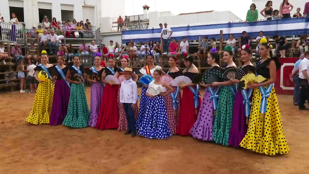 Otro momento importante es "el paseillo" que hacen las Damas de Honor junto a la Reina y el baile por sevillanas en el centro de la plaza.