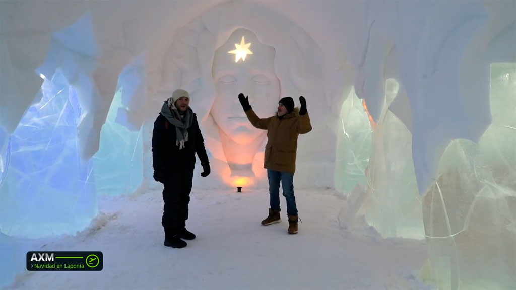 Comenzamos nuestro viaje en mitad de un lago helado y, tras conocer a los renos de Papa Noel, visitamos su lugar de trabajo, un hotel de construido íntegramente con hielo y nieve que compagina con sus pinturas ya que estudió Bellas Artes.