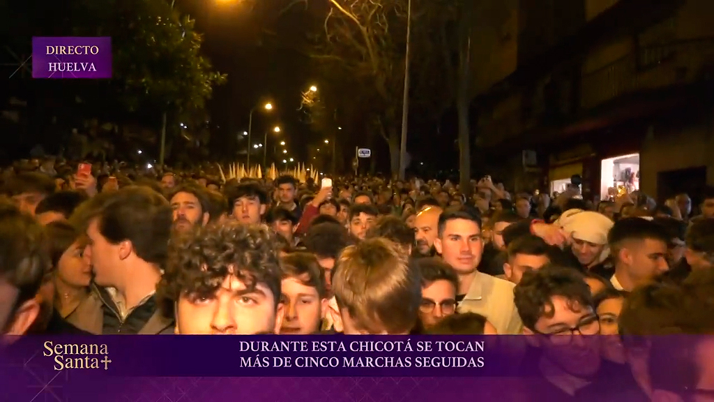 En Huelva también dio tregua la lluvia y onubenses y visitantes pudieron contemplar la esforzada chicotá de 20 minutos que los costaleros de La Tres Caídas necesitan para subir el paso de misterio de la cofradía. Ochocientos metros de cuesta y más de dos mil kilos de peso para esta cuadrilla. Una chicotá que ca acompañada de cinco marchas seguidas.