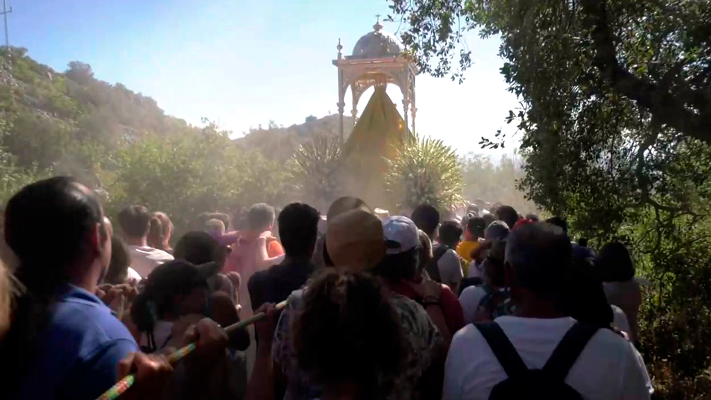 La romería empieza a más de 1.300 metros de altura. El "4 a las 4" es el lema de la fiesta y viene a decir que el 4 de septiembre a las 4 de la tarde comienza la 'Bajá' de la virgen. Es una bajada de más de mil metros. Un recorrido de 10 kilómetros. Es necesario el uso de cordeles para frenar la bajada de la virgen y es uno de los momentos más especiales y multitudinarios del recorrido. Además, todo el mundo se puede meter para llevar a la virgen.