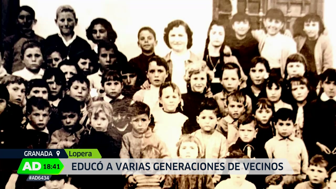 Antonia, la maestra de pueblo que durante años enseñó mapas, letras, matemáticas y clases de bordado en la pequeña localidad granadina de Lopera, ha vuelto al colegio para ser homenajeada por sus antiguos alumnos.