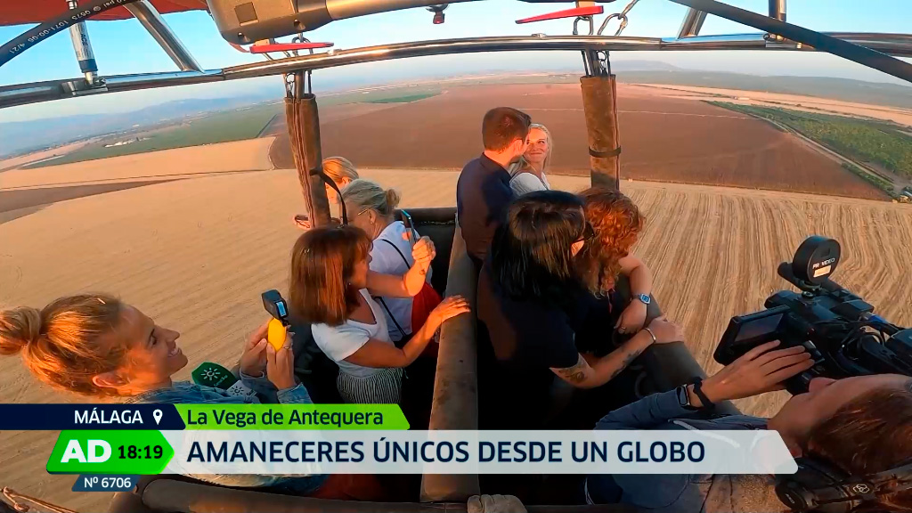 El programa "Andalucía Directo" se ha subido en un globo para contemplar el amanecer en la Vega de Antequera. A vista de pájaro se puede disfrutar del Torcal, el emblemático Peñón de los Enamorados, Antequera y sus campanarios, y toda su vega.