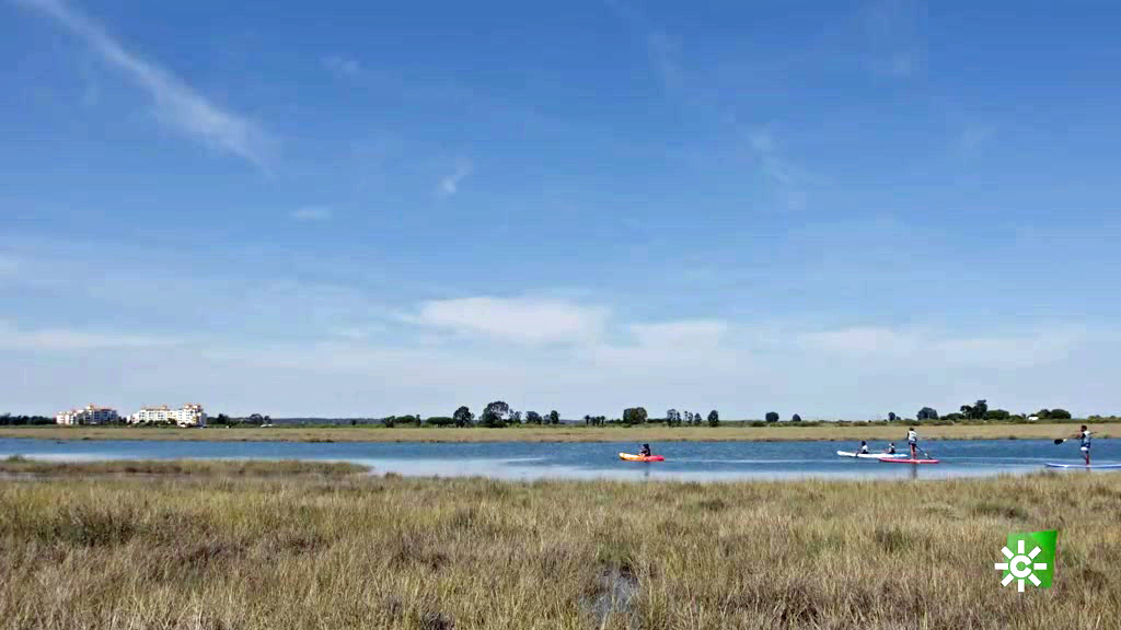 En la zona más occidental de Isla Canela, casi en su frontera con Portugal, están las marismas de San Bruno. Las disfrutamos de otro modo, en kayak o subido en una tabla de paddle surf con la monitora Paula Navarro. En esta singular ruta podemos observar la fauna y flora de este pequeño paraíso de la Costa de la Luz.