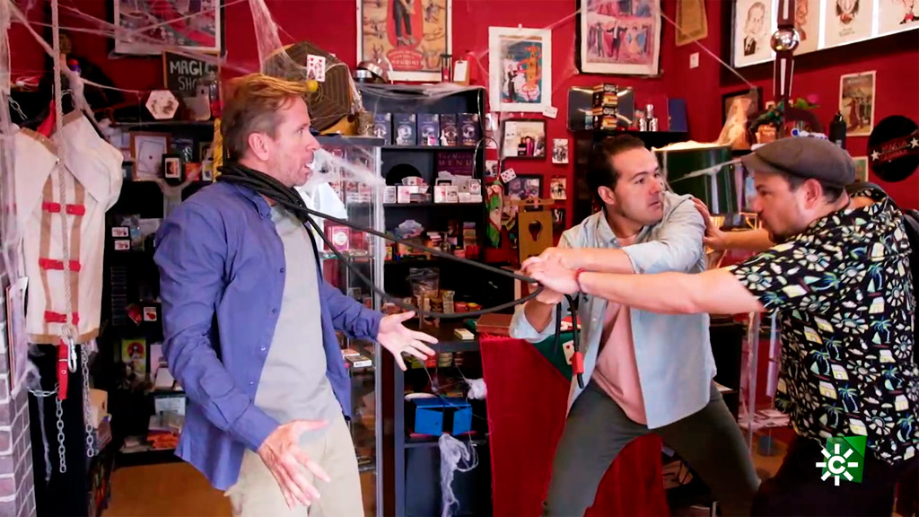 Alfonso fracasa en su primer intento. Y es que no se le ocurre otra cosa que pedir a los asistentes un billete de 50 euros para hacerlo desaparecer. Y Alberto solicita la colaboración de un voluntario, pero a la vista de su indumentaria nadie está por la labor y tiene que recurrir a su compañero de fatigas. ¿Lograrán hacer algún truco con éxito?