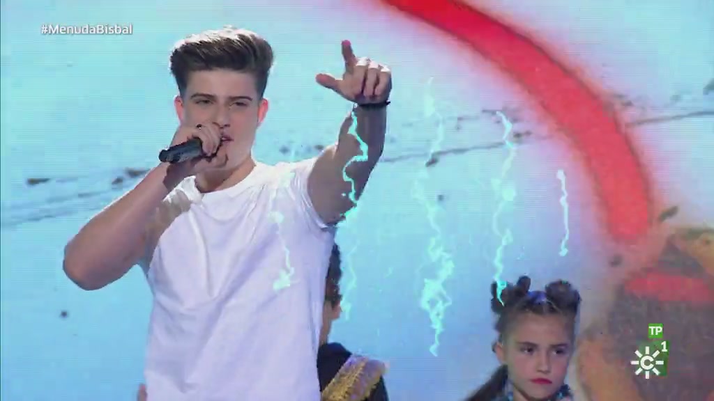El primer ganador del talent show Fenómeno Fan acude al lprogama infantil de Juan y Medio con el primer senciñllo de su disco "Qué tienes tú".