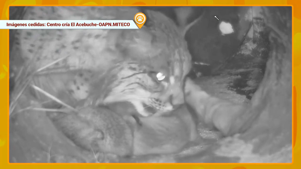 Por su parte, Yasmín El Bouyafrouri, veterinaria del centro de cría "El Acebuche" nos explica que un lince se alimenta de conejos pero también los alternan algo de pollo o ternera. Sobre la reproducción de un lince Yasmín cuenta que "están gestantes entre 63 y 65 días y cuando cumplen 45 días de gestación empezamos a coger muestras de heces que nos dice a través de una hormona si están gestantes o no".