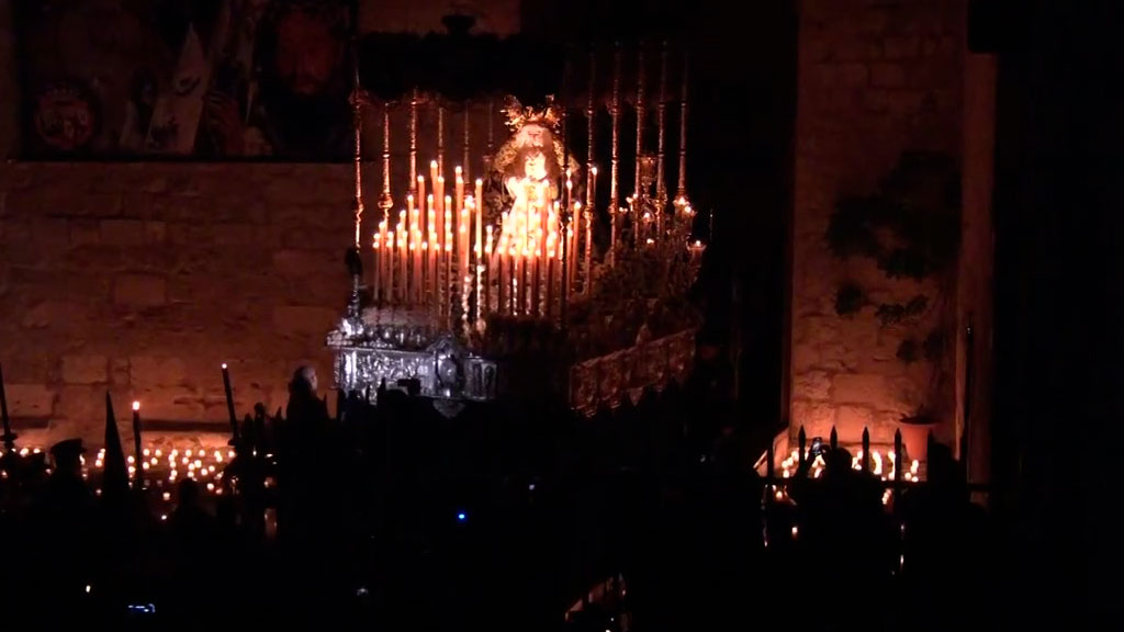 Tras el Abuelo, dos horas después, ha salido María Santísima de los Dolores que lucía ante la inmensidad de la oscuridad de la ciudad con las velas que iluminaban su rostro en su palio.