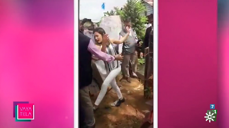 En su recorrido por la comunidad a punto estuvo de jugarle una mala pasada, porque saliendo de una vivienda doña Letizia estuvo a punto de caer al apoyarse en falso sobre una piedra.