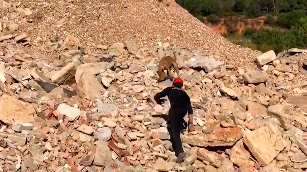 Estos perros reciben adiestramiento para encontrar a personas sepultadas pero aún con vida. También descubrimos que el período de adiestramiento de un perro de rescate suele terminar en treinta días. "Cuando lo jubilamos, añade Tino, él seguirá con nosotros y ahora está de baja y no puede trabajar". Por eso también conocemos a Piero, otro perro bombero que estuvo en el terremoto de Marruecos, al que ponemos a realizar una práctica de rescate con su guía y bombero, Pablo Maestre.