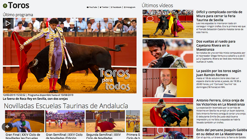 Además, podrás seguir los próximos festejos de las ferias taurinas a través de RAI, de la mano de Juan Ramón Romero.