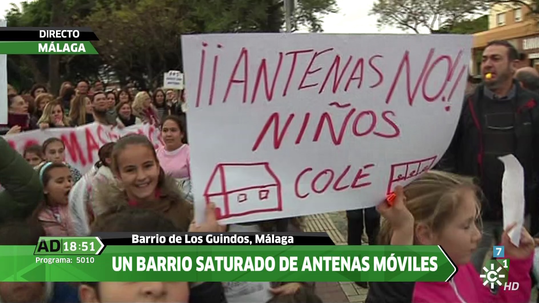 Los vecinos del barrio malagueño de Los Guindos tienen miedo por su salud, debido a la abundancia de campos electromagnéticos que produce la proliferación de antenas para telefonía móvil. Los vecinos explican que hay instalaciones sensibles como 2 colegios infantiles, dos institutos y un ambulatorio. Apelan a las recomendaciones de la Organización Mundial de la Salud.